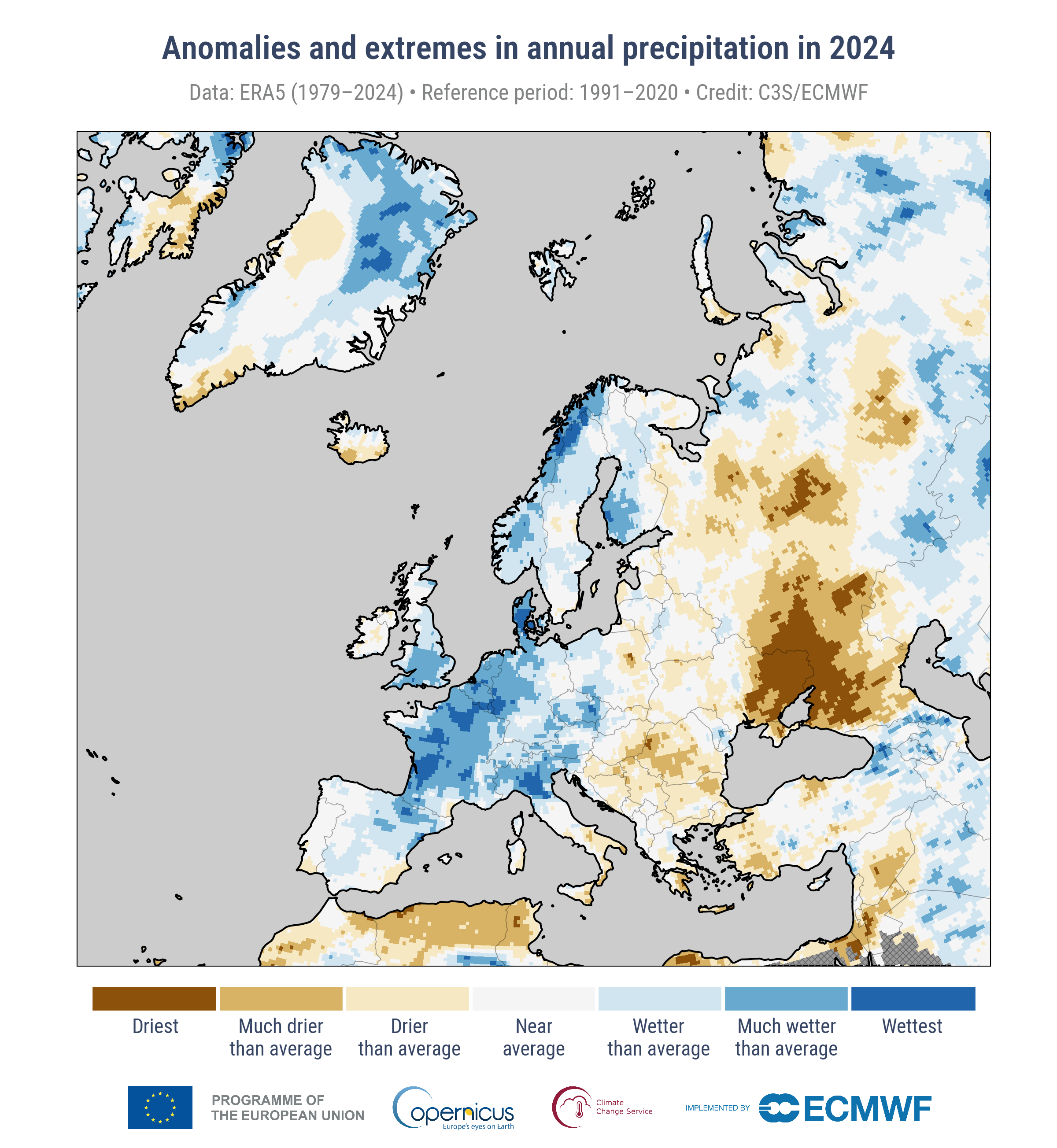 Europa jest najszybciej ocieplającym się kontynentem, a skutki zmian klimatu są wyraźnie widoczne. Rok 2024 był najcieplejszym w historii pomiarów, z rekordowymi temperaturami w regionach centralnych, wschodnich i południowo-wschodnich. Burze były często gwałtowne, a powodzie rozległe, co doprowadziło do śmierci co najmniej 335 osób i dotknęło szacunkowo 413 000 ludzi. W ciągu roku wystąpił wyraźny kontrast klimatyczny między wschodem a zachodem: na wschodzie panowały ekstremalnie suche i często rekordowo ciepłe warunki, natomiast na zachodzie – ciepłe, lecz wilgotne.