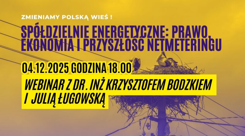 04.12.2025, godzina 18:00 – zapraszamy na trzecie i ostatnie spotkanie z cyklu webinarów poświęconych spółdzielniom energetycznym. Wydarzenie na żywo dostępne będzie na kanale YouTube Zielone Wiadomości.