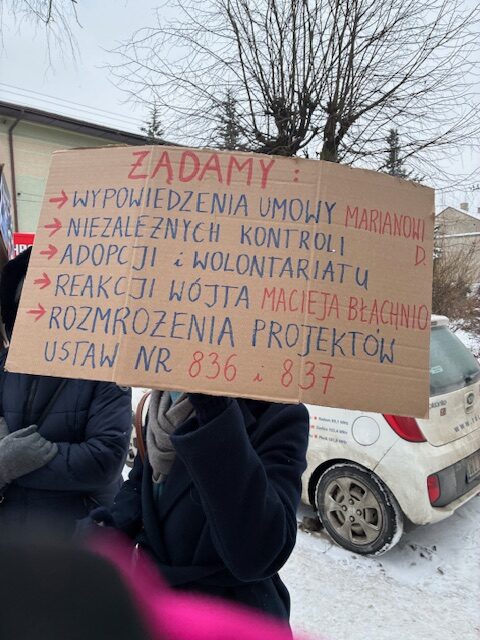 „Jesteśmy tu, bo system zawiódł. Gmina przez lata przymykała oko na to, co działo się za tymi murami. Dziś mówimy: dość!” – krzyczała przez megafon jedna z aktywistek, a jej głos drżał z zimna i wzruszenia.