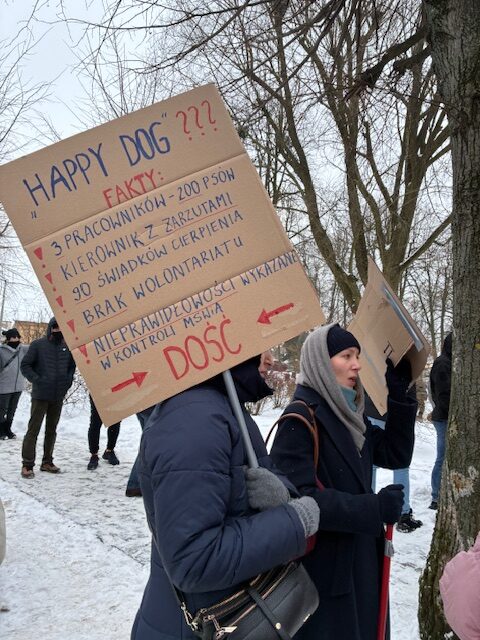 Zza płotu schroniska “Happy Dog” dobiegało szczekanie, które dla wielu obecnych brzmiało jak wołanie o ratunek. Z relacji uczestniczki: “W powietrzu unosił się zapach, którego nie da się zapomnieć – mieszanka wilgoci, odchodów i choroby.” To tutaj, według licznych relacji wolontariuszy i wolontariuszek, psy miały żyć w rażąco złych warunkach, cierpiące z powodu wyziębienia, braku wody i niedożywienia.