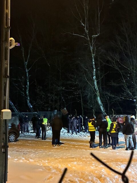 Jak relacjonują uczestnicy wydarzenia, po burzliwych wystąpieniach pod urzędem, tłum ruszył w stronę samego schroniska. Atmosfera gęstniała. Policja, która od rana apelowała o zachowanie spokoju, od rana zabezpieczała miejsca protestu. Na drodze prowadzącej do schroniska stworzył się paro kilometrowy korek. Ludzie tłumnie opuścili samochody kierując się na piechotę do znacznie oddalonego schroniska.