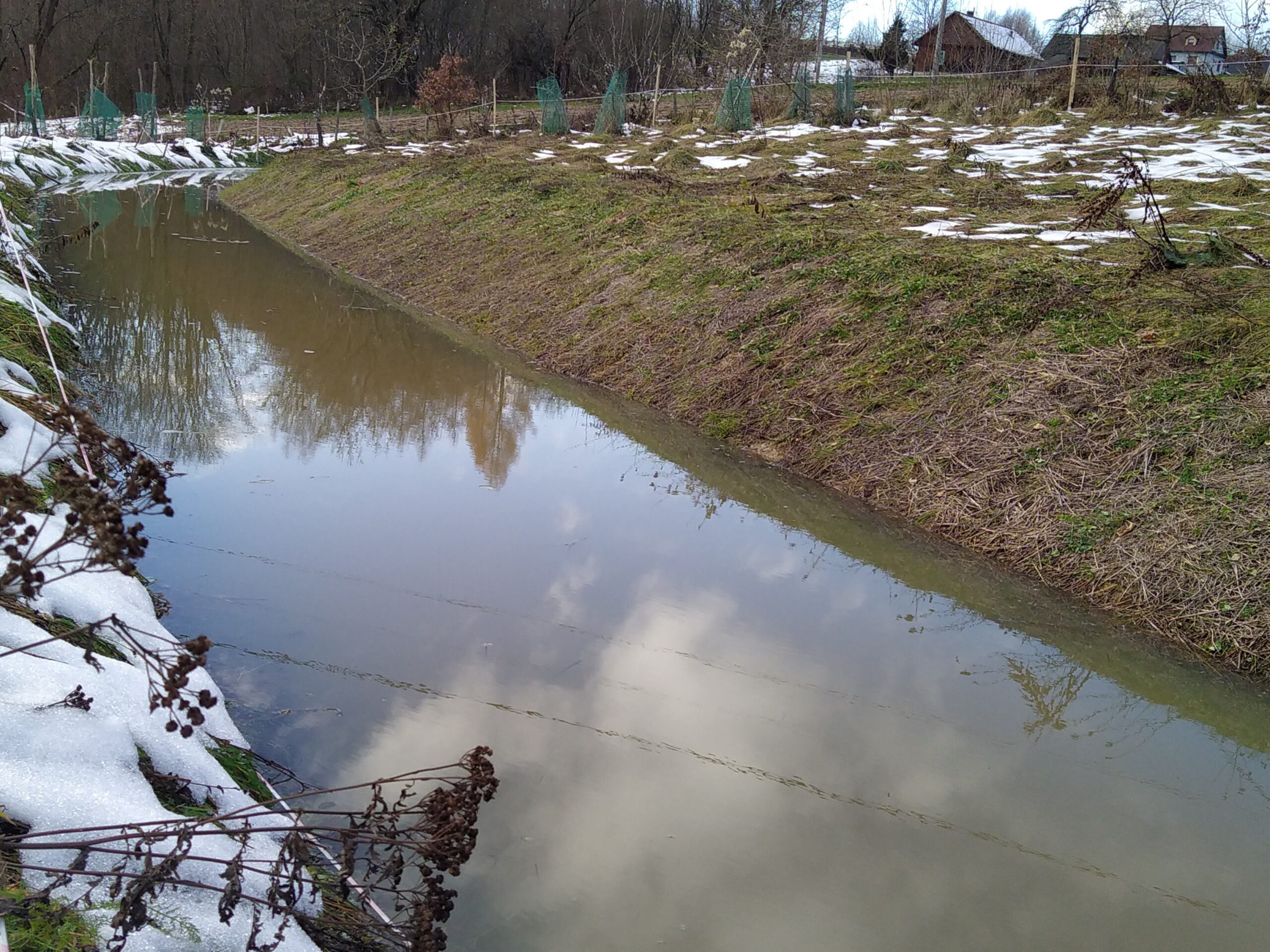 Osiem miesięcy później, w listopadzie, po obfitych opadach śniegu i następnie łagodnej odwilży, rów osiągnął niemal maksimum swojej pojemności. Znajdujące się w nim 106 m3 wody unaocznia jak sprawny jest to system mimo swej prostoty. Jednocześnie, zebrany opad nie ogranicza się do wody widocznej na powierzchni. Znaczna jej część zdążyła wcześniej wsiąknąć w glebę i zasilić wody gruntowe. Gdy drzewa urosną, ich tkanki także stanowić będą żywy magazyn wody, a rozpostarte korony będą dawały cień, co spowolni parowanie i pozwoli na jeszcze wydajniejszą akumulację. Im ten system jest starszy – tym bardziej wydajny i bioróżnorodny. Dorosłe drzewa będą dawały plon człowiekowi, paszę i cień wypasanym zwierzętom, oraz cały szereg innych usług ekosystemowych.