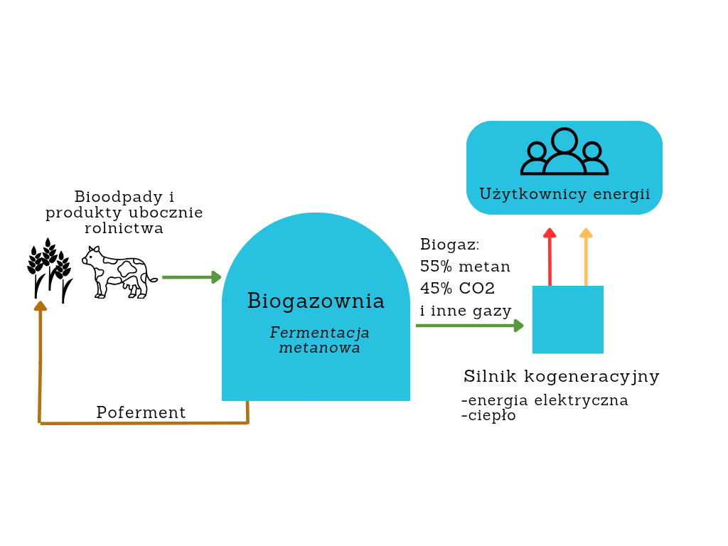 W biogazowni następuje przeniesienie tego procesu w miejsce odizolowane, dzięki czemu można wykorzystywać powstały tam biogaz do produkcji energii.