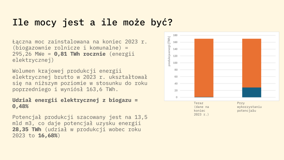 Polska jako kraj o dużej łącznej powierzchni gospodarstw rolnych oraz rozwiniętym przemyśle przetwórstwa żywności ma ogromny potencjał do produkcji biogazu.