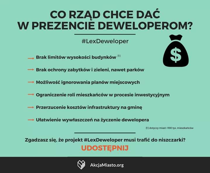 Stanowisko Kongresu Ruchów Miejskich: https://kongresruchowmiejskich.pl/lexdeweloper/