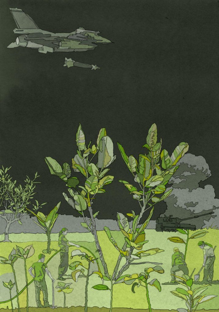 Brak niezależności rozporządzania gospodarką wodną powoduje też odcięcie tych terenów od źródeł energii elektrycznej, którym jest tam system wodny. Turbiny nie mają wystarczającej ilości wody żeby się kręcić, psują się, a ekonomiczne embargo nałożone na Rojave nie pozwala na ich renowację. System irrygacyjny jest niemal całkowicie zniszczony przez wojnę. Do degradacji środowiska przyczynia się także wydobycie ropy naftowej, a sytuacja w rolnictwie pogarsza się poprzez postępujące tam pustynnienie. Kolejnym dużym problemem jest deforestacja związana z zakładaniem ogromnych monokultur zbóż i uprawą drzew oliwnych. Od samego początku, gdy syryjskie tereny wywłaszczane były od rządu przez lokalne kooperatywy, zobowiązywały się one do odbudowy różnorodności biologicznej, kultywacji hodowli bydła i sadzenia drzew w celu zachowania niezależności regionu. Jako “Make Rojava Green Again” staramy się wspierać ten proces poprzez uświadamianie lokalnych producentów o wadze różnicowania ich upraw. Warto wspomnieć, że to właśnie rolnictwo daje mieszkańcom największe zatrudnienie. Wymiana żywności wśród producentów, a tym samym wzmocnienie niezależności regionu to jeden z naszych długodystansowych celów. W niektórych komunach ludzie zaczęli już pracować z ziemią bardziej kolektywnie, często oddanie terenów w ręce społeczności jest sposobem na ocalenie go od popadnięcia w nieużytek. Ludzie zdają sobie coraz bardziej sprawę z tego, że nie potrzebują właścicieli ani szefów, że mogą sami sprawiedliwie się organizować – opowiada Martin.