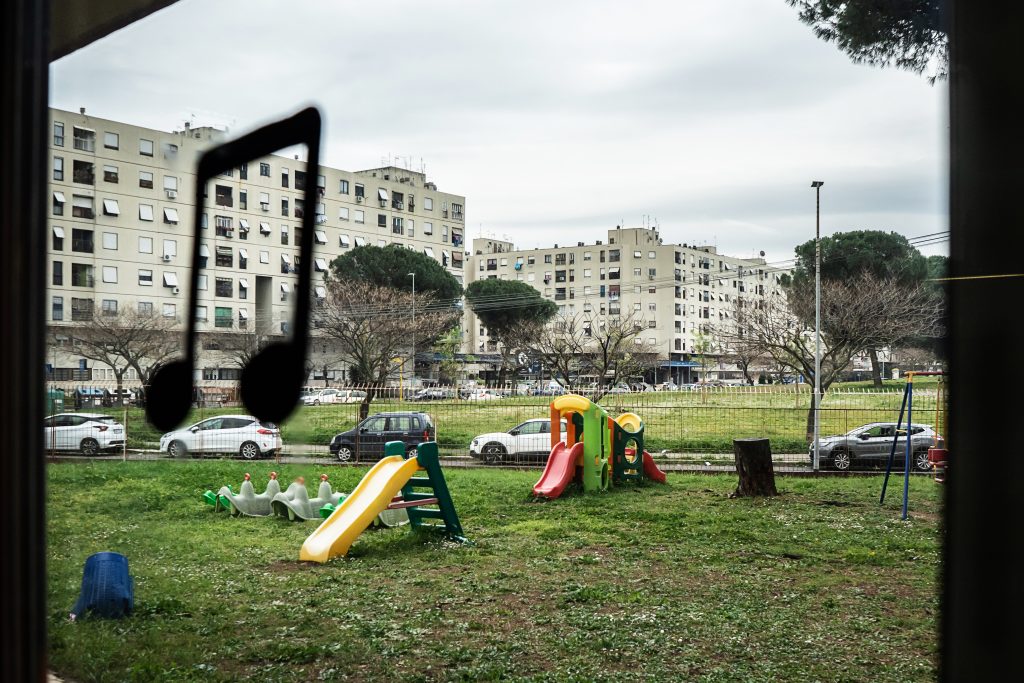 Jakby umacniając swoje miejsce w samowystarczalnym systemie, jakim jest Via dell’Archeologia, szkoła odmalowuje swoje ściany, buduje przestrzenie do integracji i tka więzi z lokalną społecznością, tak by stworzyć możliwość alternatywnej egzystencji w dzielnicy. Ale poza szkolnymi murami życie na twardym betonie wymusza na uczniach inne, ostrzejsze poczucie przynależności.