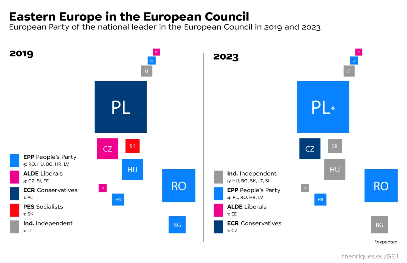 Europa Wschodnia będzie miała kluczowe znaczenie dla reorientacji nieliberalnych sił w tym bloku. Polski PiS przewodzi EKR od czasu Brexitu, ale w swoim kraju właśnie przeszedł do opozycji. Węgierski Fidesz zdecydował się opuścić EPL w 2021 r., woląc taki krok niż bycie z partii wydalonym. Proputinowska i populistyczna socjaldemokratyczna partia Smer na Słowacji została zawieszona w prawach członka Europejskich Socjalistów po wygraniu wyborów parlamentarnych we wrześniu. Czeska partia ANO byłego premiera Babiša jest w konflikcie z europejskimi liberałami z ALDE. Wszystkie te wydarzenia otwierają nieliberalny front dla nowych sojuszy na poziomie UE.
